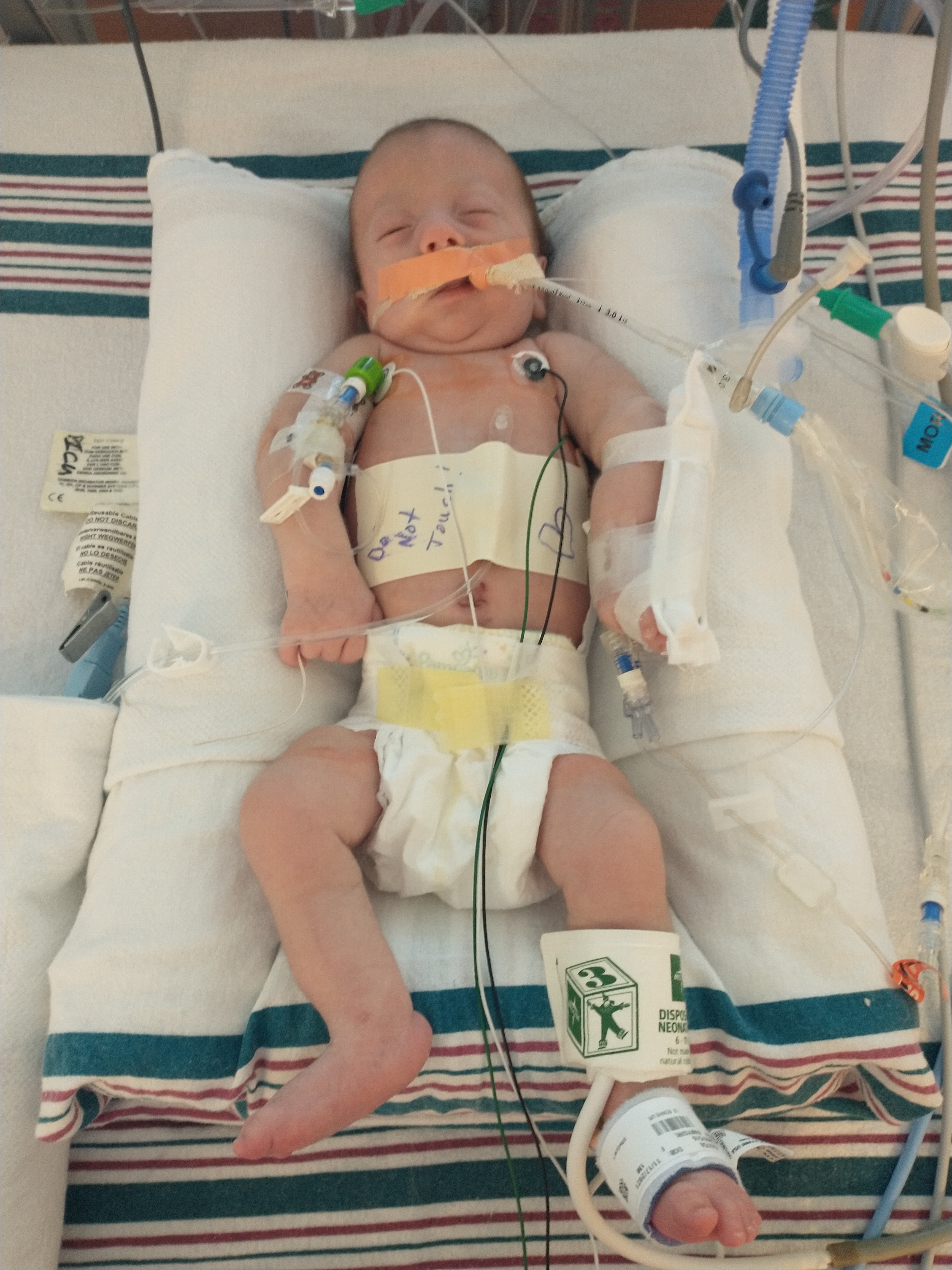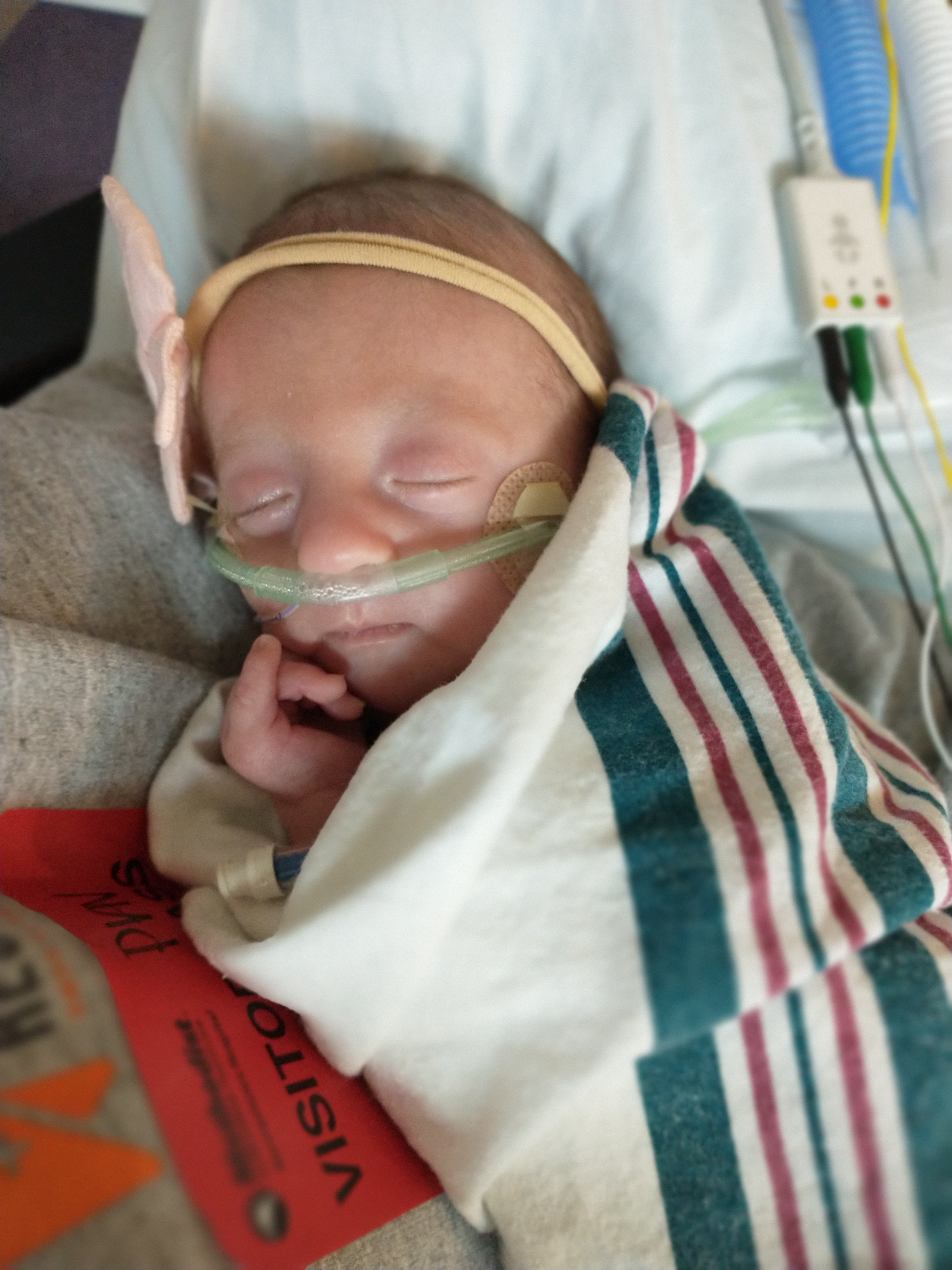 Izzie arrived weighing just four pounds and spent her first 49 days in the hospital, battling seizures, apneic episodes, and feeding through a nasal tube. At three weeks old, a congenital heart defect caused a near-fatal pulmonary hemorrhage.